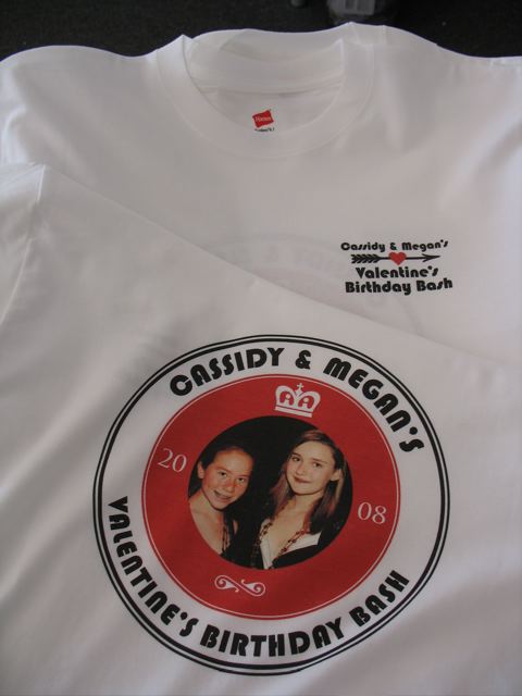 It was Cassidy and Megan’s Valentine’s Birthday Party and they wanted cool t-shirts for party favors. When Megan’s Mom came in all she had was a photo of the girls and a theme so we did the rest.