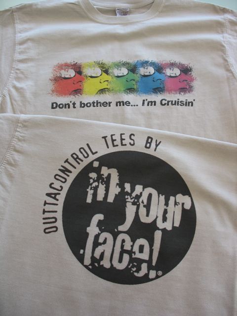 The guys from In Your Face stopped in to have some t-shirt samples made. They were specifically looking for direct to garment printing because of their 6 color design. You see, the silk screening company they were using could only handle a maximum of 5 colors which limited their possibilities. That’s one of the points where the DTG printer shines.